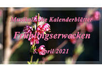 Auf dieser Seite sind die Musikalischen Kalenderblätter zusammengestellt, die ich seit März 2020 komponiert bzw. eingespielt und als Filme auf YouTube veröffentlicht habe. Klicken Sie einfach auf das jeweilige Bild und Sie gelangen zum entsprechenden Film auf meinem YouTube Kanal. Falls Sie die Musik gerne in der reinen Audio-Fassung auch "offline" anhören können möchten, kann ich Ihnen auf Wunsch eine individuelle CD oder ein MP3-Album zusammenstellen, auf der sich 6, 9 oder 12 Kalenderblätter befinden. Sie können auch aus drei von mir